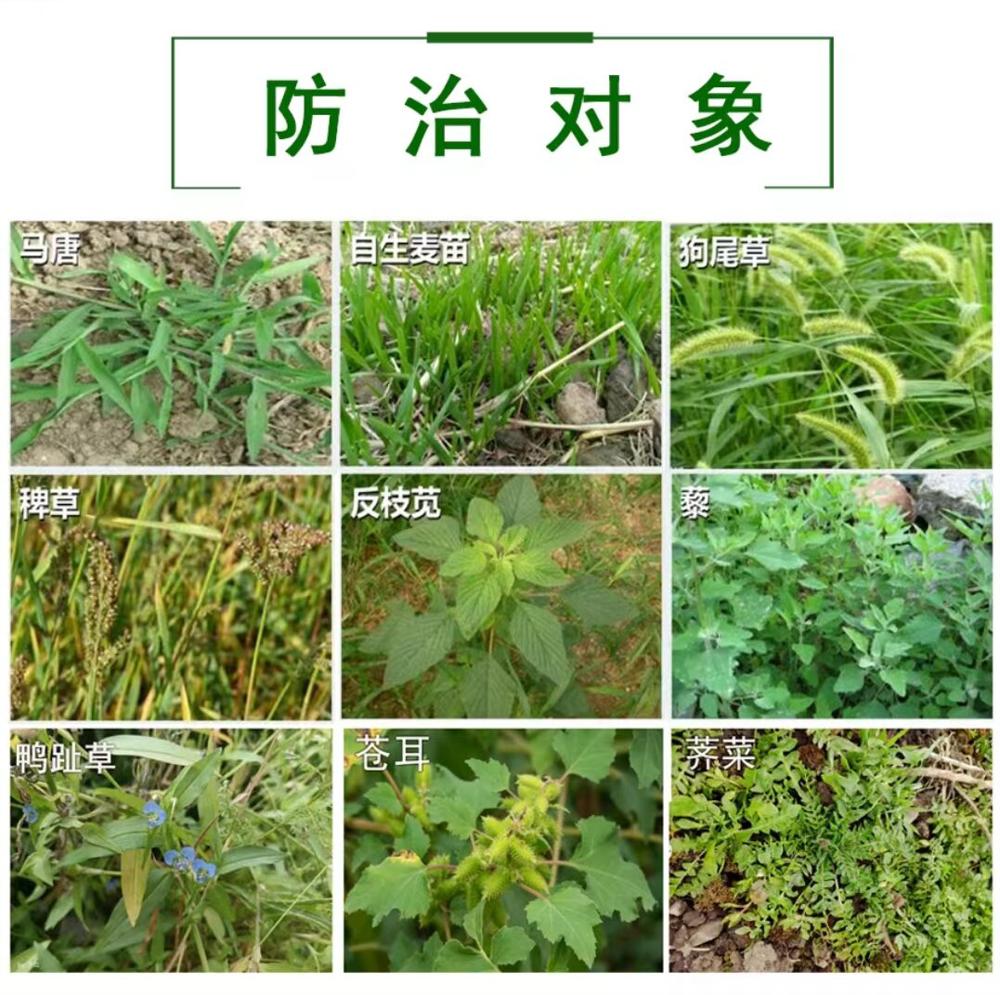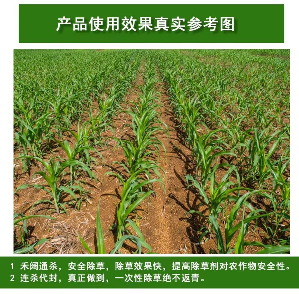 玉米苗后除草剂:连杀带封,一次性除草不返青,安全性高。有效防除玉米田中一年生禾本科杂草和阔叶杂草,如狗尾草、稗草、牛筋草、马齿苋、铁苋菜、马塘、看麦娘、反枝苋、藜、寥、苋等,对玉米安全。具有安全性高、纯度高、药液直径小、易被植物吸收、内吸传导快的特点