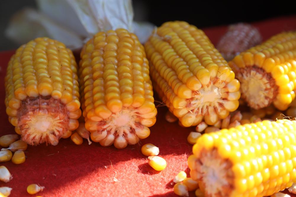 特征特性:积温在2120-2150℃左右,与对照德美亚1号熟期相当。株高290厘米,穗位高100厘米,成株叶片数17片。果穗长锥型,穗长18.9厘米,穗行数14-18行,穗轴红色,籽粒黄色,百粒重33.1克。籽粒容重786克/升。
